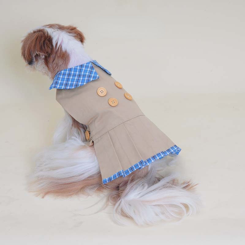 ชุดเดรสสุนัขแบบคลาสสิก ผ้าฝ้ายเนื้อแน่น ระบายอากาศได้ดี คอปกเสื้อแบบไม่มีแขน อุ่นสบาย เหมาะสำหรับสุนัขและแมวตัวเล็ก