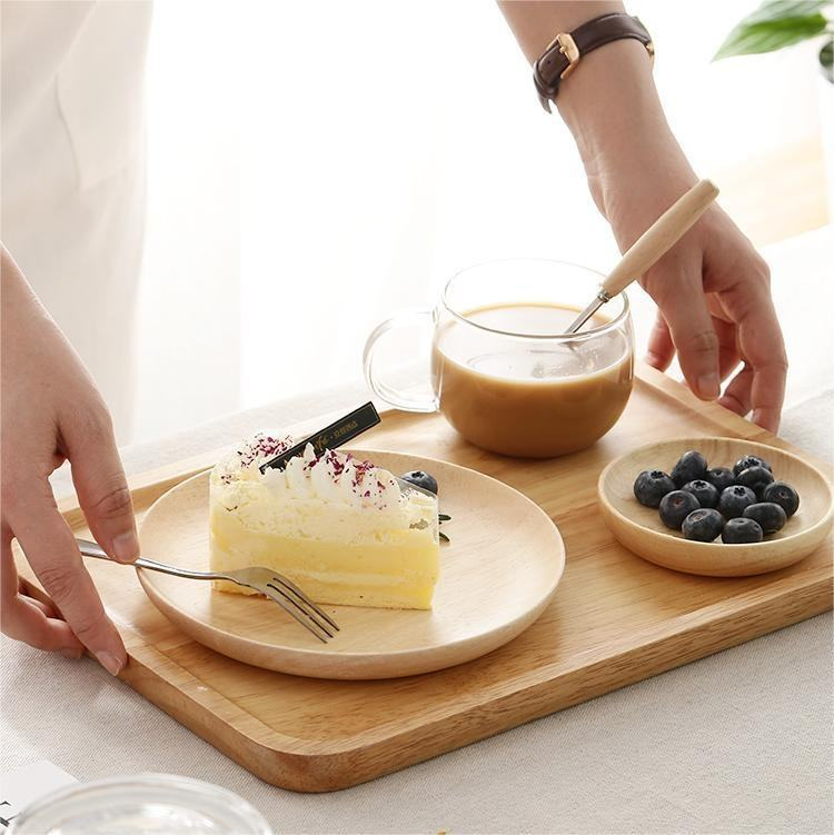 จานไม้โอ๊คแท้แบบคลาสสิกและชุดภาชนะสำหรับผลไม้ ขนมปัง ของว่าง สเต็ก งานเลี้ยง