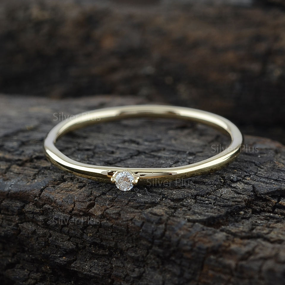 แหวนหมั้นโซลิแทร์คลาสสิกสี G-H เพชร14K สีเหลืองทองสำหรับปาร์ตี้วันครบรอบ-ผู้ผลิตโดยตรง