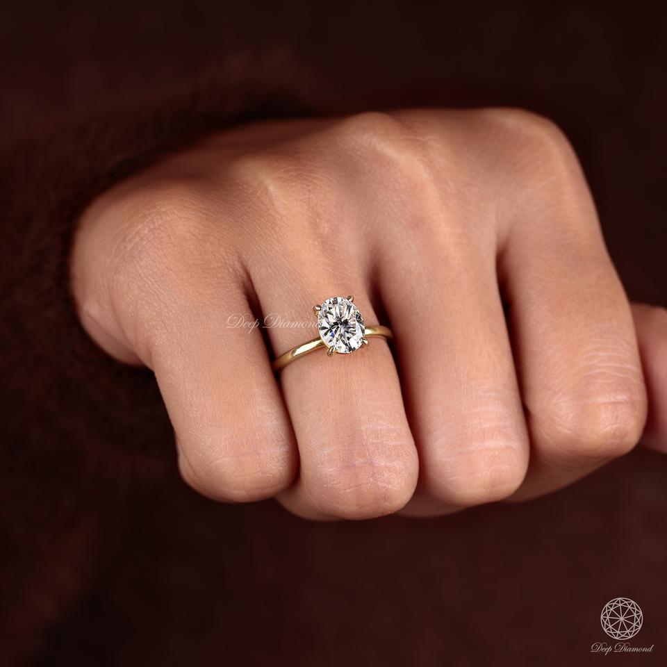 แหวนเพชรทรงรีแบบโซลิแทร์จากเพชรเพาะเลี้ยงในห้องปฏิบัติการ