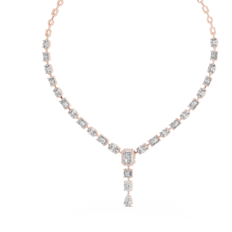 Classic Sparkling Rose Gold 10K Necklace for Women 21.178 Lab Grown Diamond Mix Shape Diamonds for Gifts and Parties