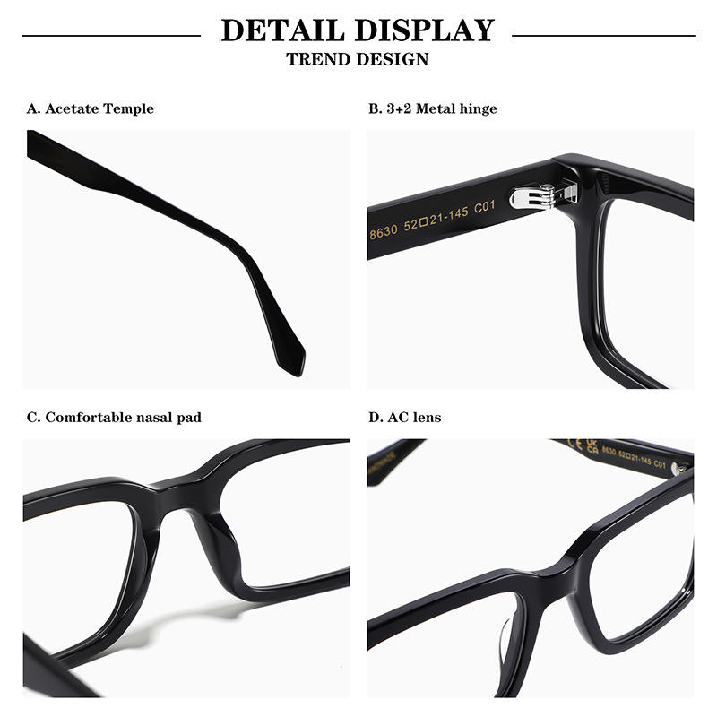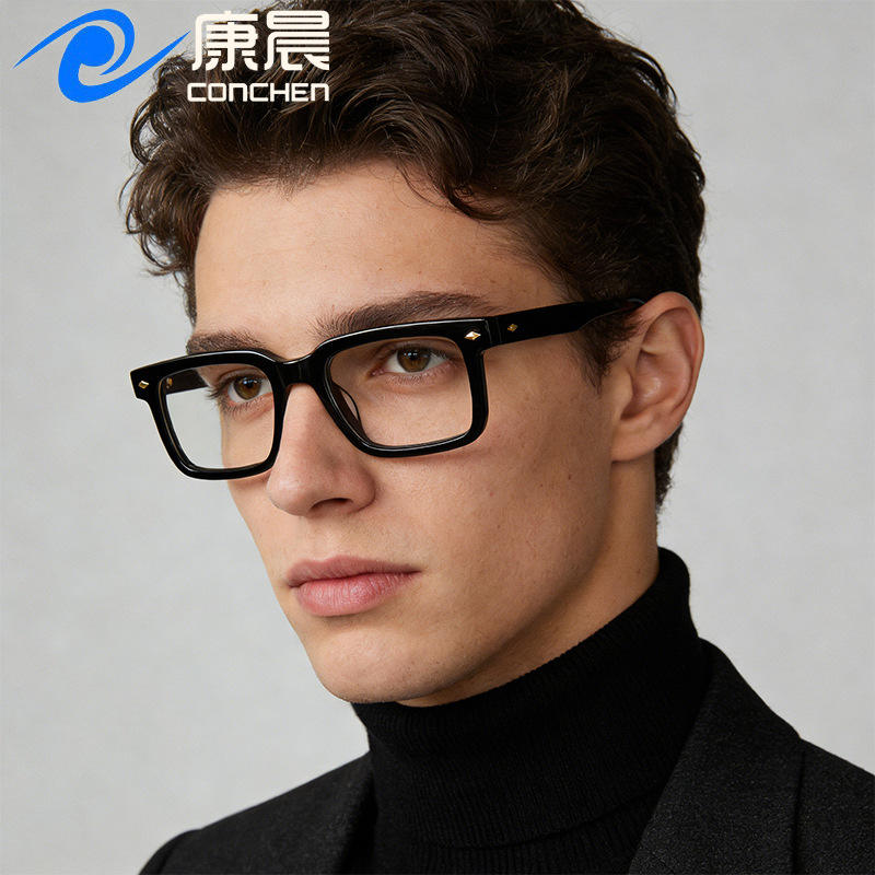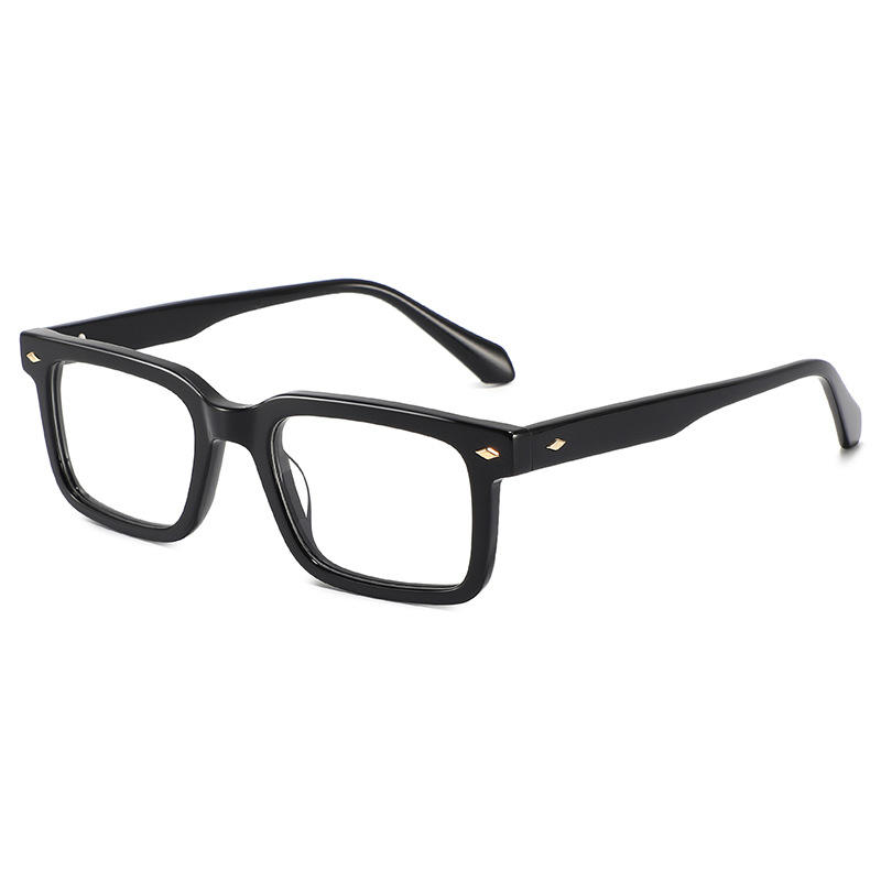 กรอบแว่นอะซิเตททรงสี่เหลี่ยมคลาสสิก ดีไซน์เรียวบาง สำหรับทุกเพศ พร้อมเลนส์แบบ Plano ประดับหมุดทรงข้าว งานแฮนด์เมด สไตล์เรโทรมินิมอล แว่นสายตา