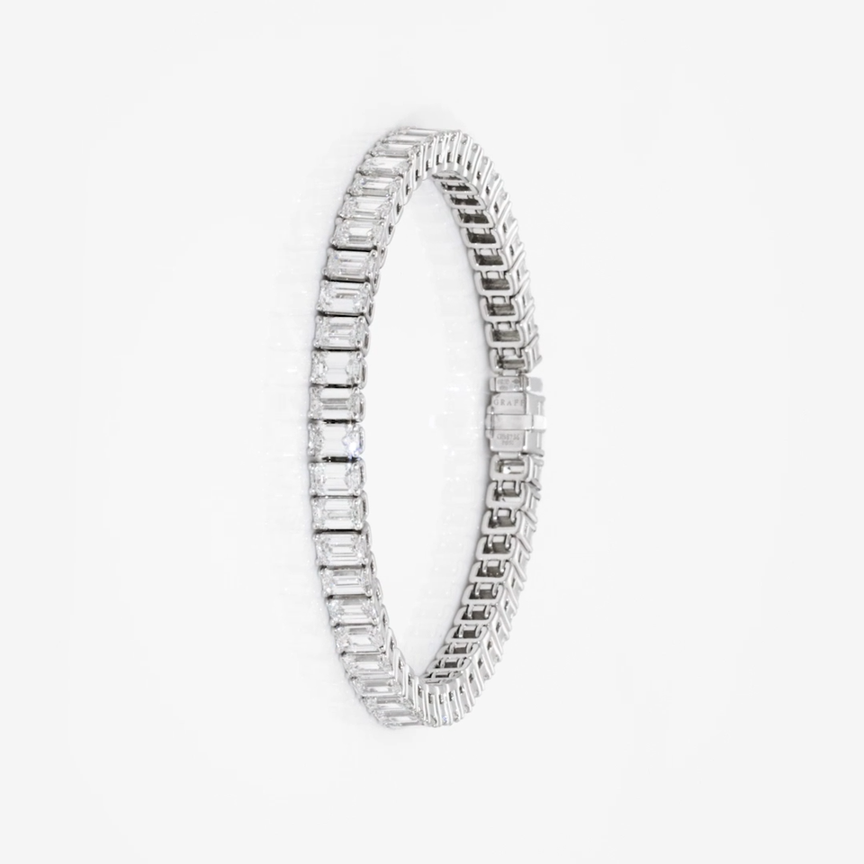 สร้อยข้อมือเทนนิสทรงสี่เหลี่ยมคลาสสิกสำหรับผู้หญิงสร้อยข้อมือเพชรโมอิสชุบโรเดียมถักด้วยมือ