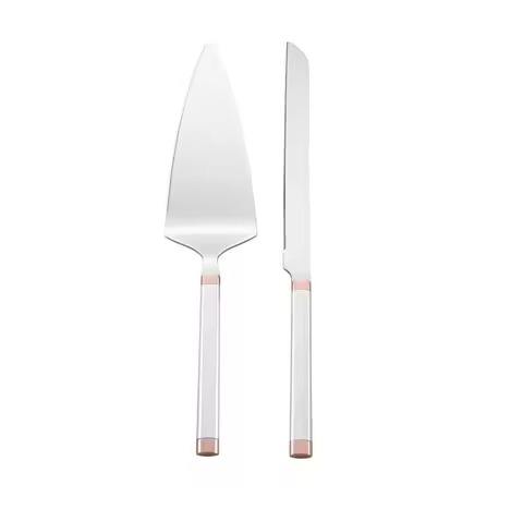 ชุดอุปกรณ์เสิร์ฟเค้กสแตนเลสคลาสสิกพร้อมด้ามจับดีไซน์พิเศษเพื่อการตัดเค้กและเสิร์ฟของหวานอย่างเหนือกาลเวลา