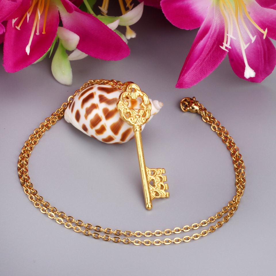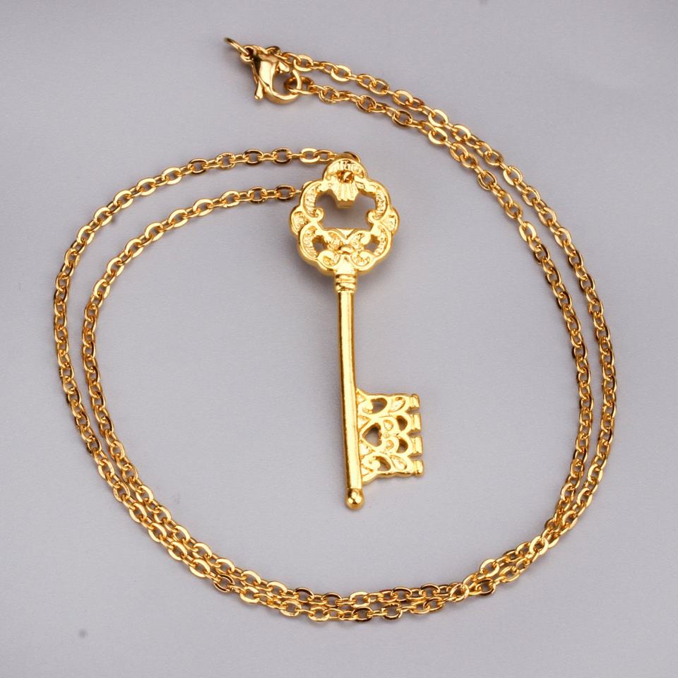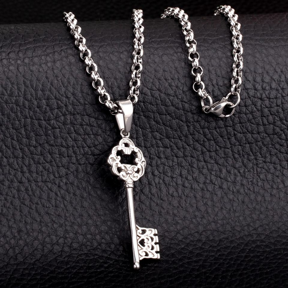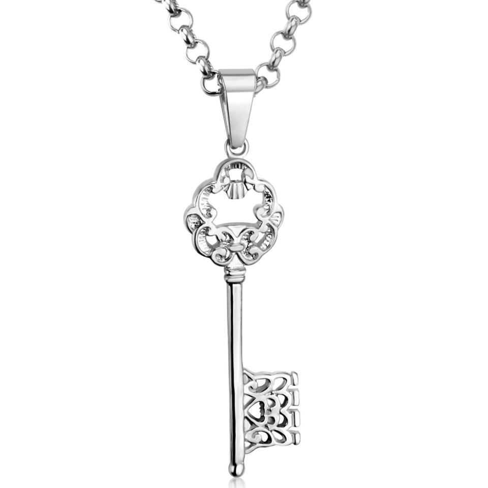 Classic Stainless Steel Cubic Zirconia Key Pendant Necklace