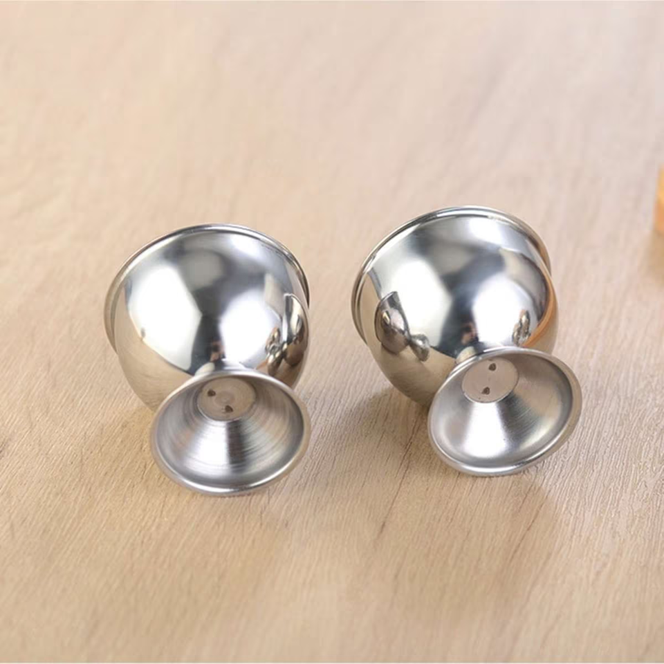 ถ้วยไข่สแตนเลสคลาสสิก 4 ชิ้น ดีไซน์ทรงกลม พร้อมโลโก้สั่งทำ สำหรับร้านอาหารและครัว ถ้วยไข่ดีไซน์สร้างสรรค์