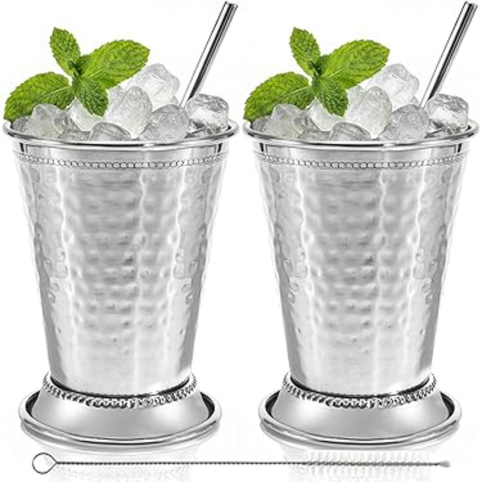 แก้วมิ้นท์จูลีปคลาสสิก สแตนเลสสตีล ดีไซน์ลูกปัดแบบดั้งเดิม ผิวแบบตอกลาย แก้วค็อกเทลโลหะ อุปกรณ์บาร์สำหรับงานปาร์ตี้และบาร์ที่บ้าน