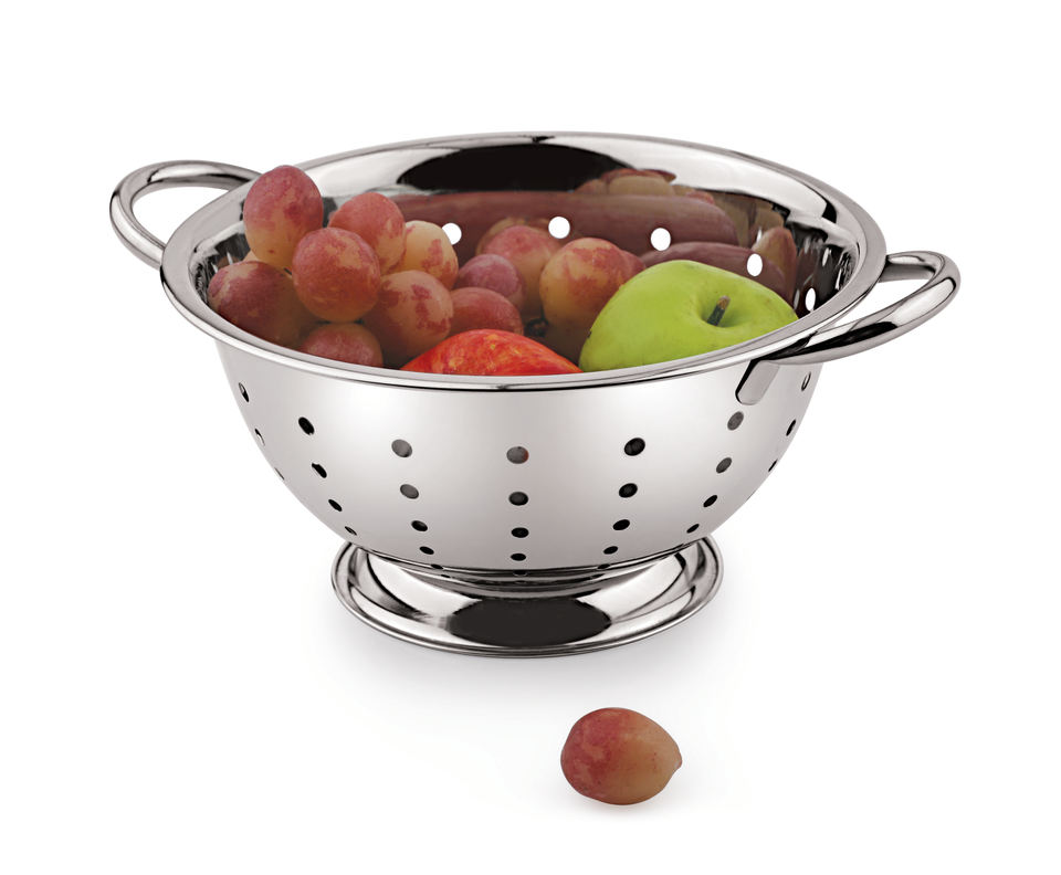 กระชอนสแตนเลสแบบคลาสสิก ขัดเงาโครเมียม ฐานยกสูง พร้อมที่กรองน้ำ ล้างง่าย เป็นมิตรกับสิ่งแวดล้อม ใช้กับเครื่องล้างจานได้