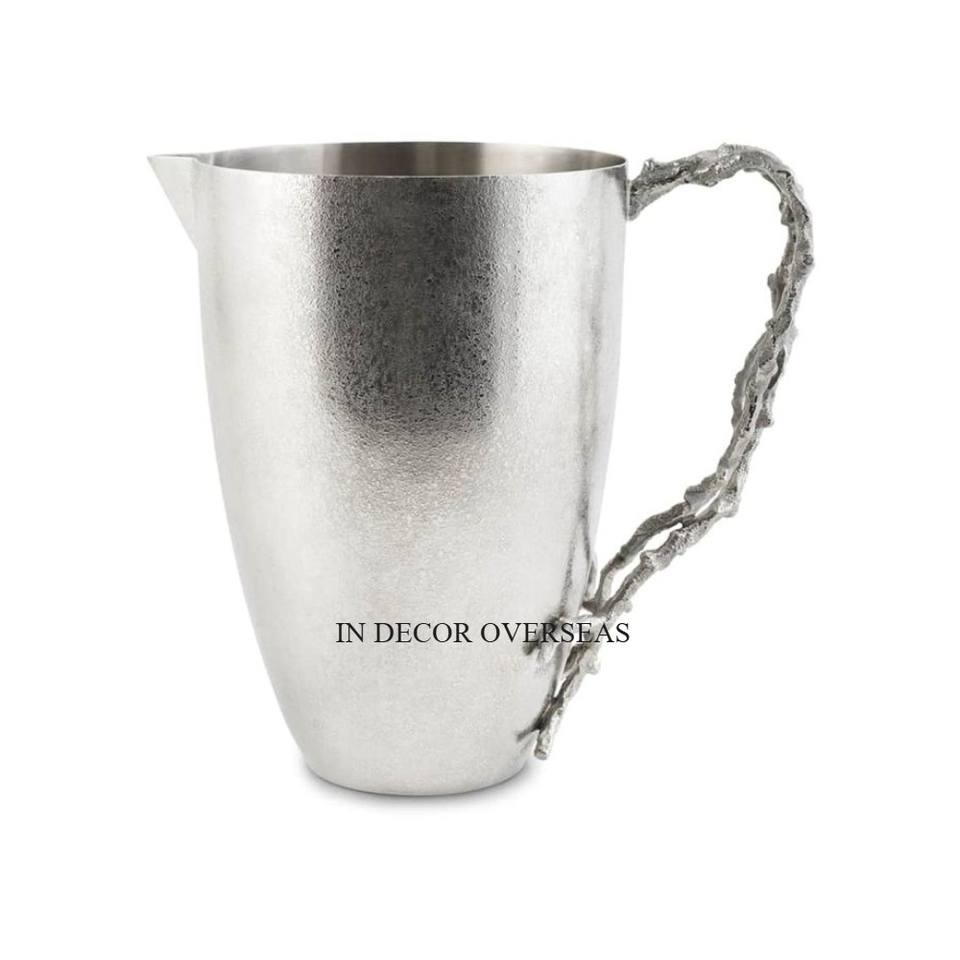 เหยือกเบียร์และไวน์สแตนเลสสตีลมีหูจับและฐานเคลือบสีทองเงามาตรฐานคลาสสิก