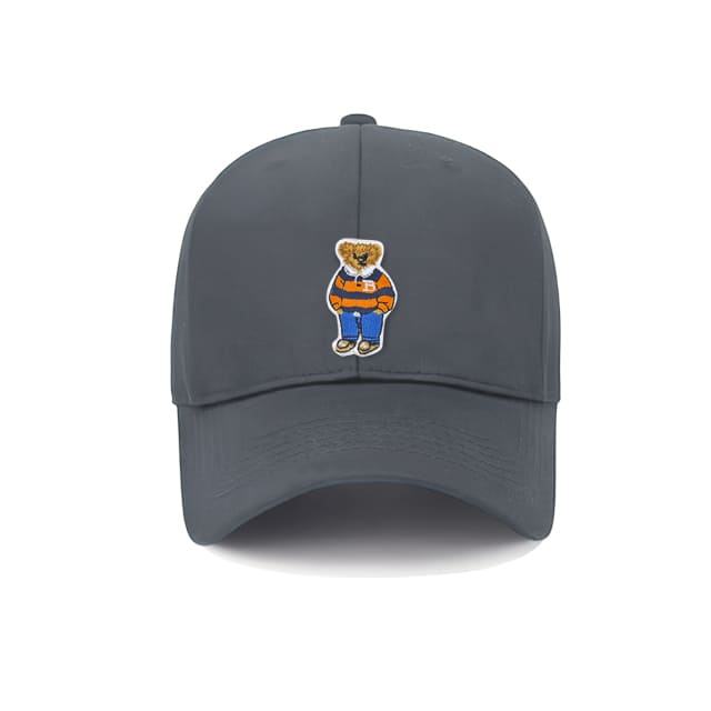 หมวกผ้าฝ้าย100% 6แผงสไตล์สตรีทแบบคลาสสิกใส่ได้ทั้งชายและหญิงพร้อมแผ่นรีดติดลายหมีและหัวเข็มขัดโลหะ