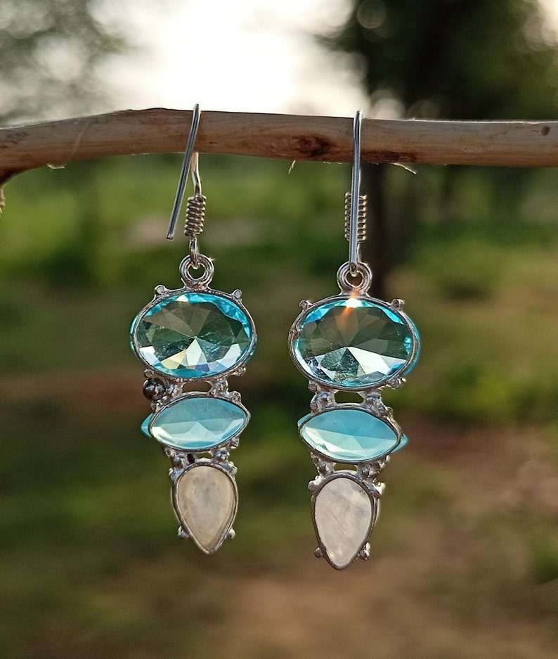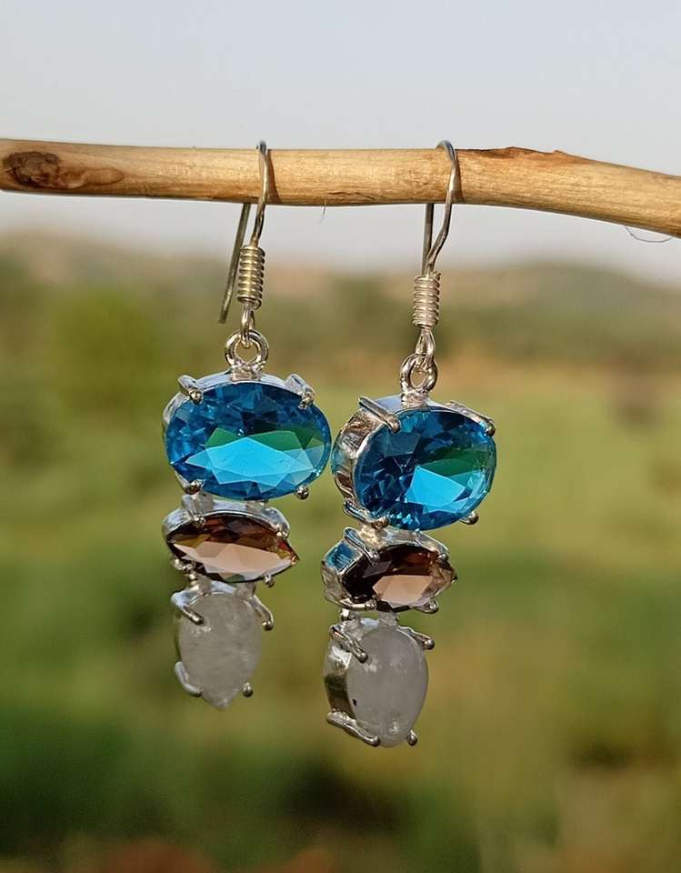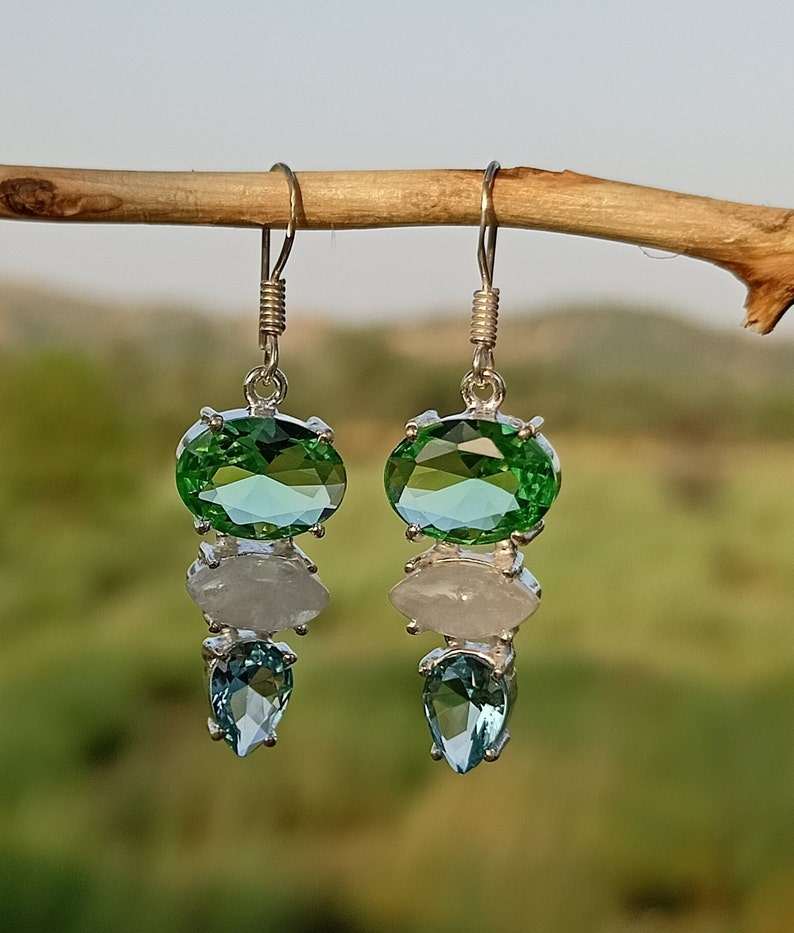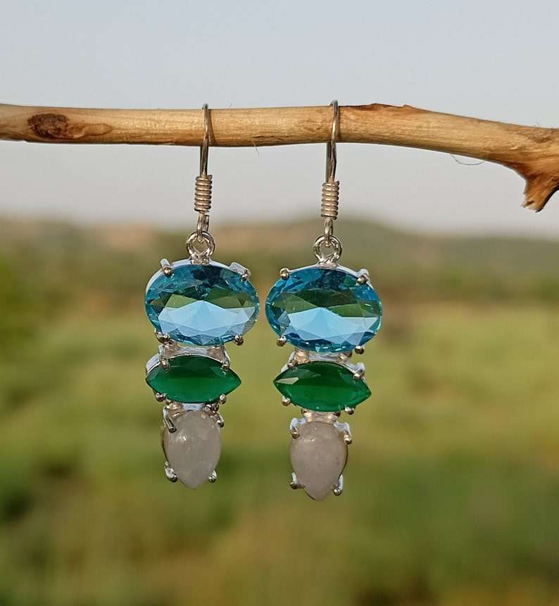 Classic Style 18K Gold Plated Multi-Gemstone Drop Earrings One-of-a-Kind Brass Jewelry Birthday Gifts for Wife or Sister