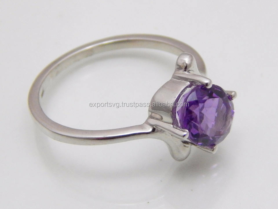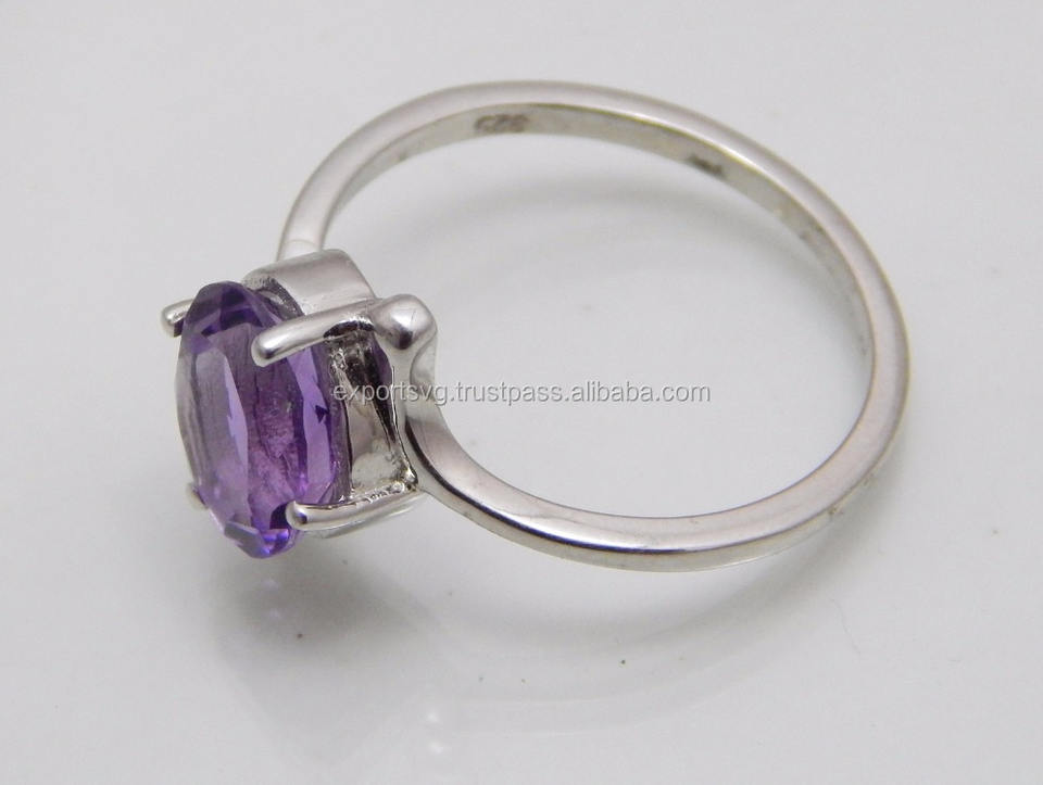 แหวนแต่งงานผู้หญิงสไตล์คลาสสิกเงินแท้ 925 ประดับพลอยอเมทิสต์ควอตซ์ 1.84 กะรัตแบบฝังหนามเตย