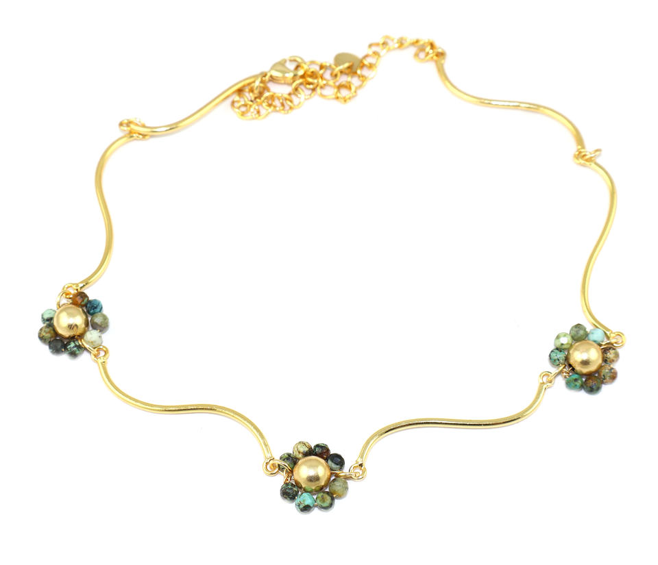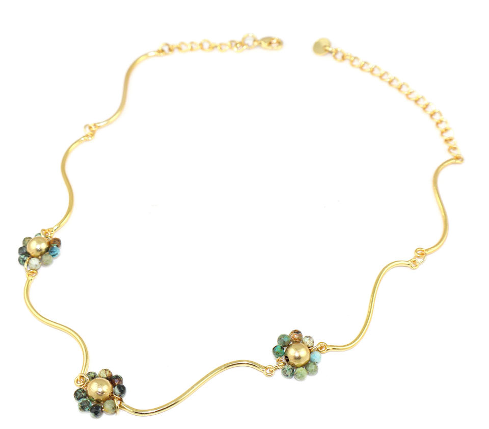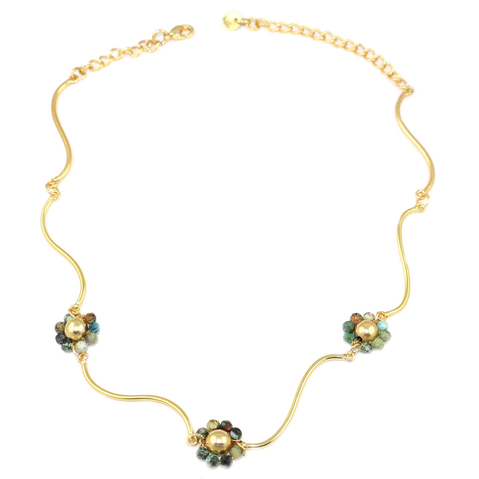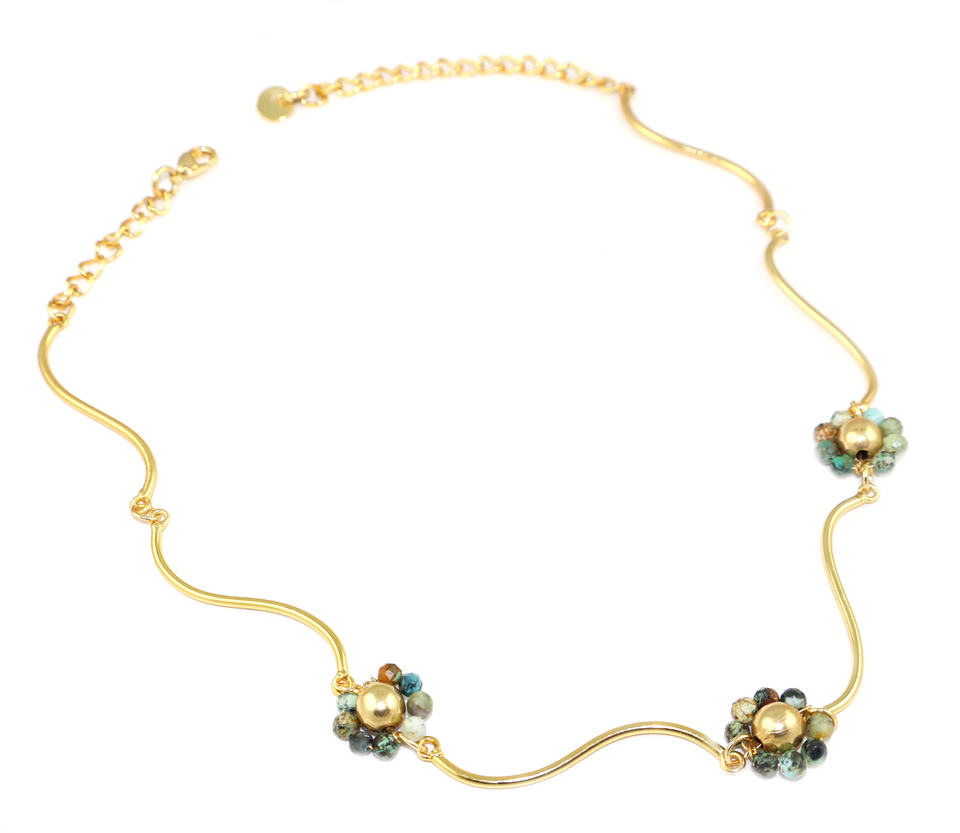 Classic Style African Turquoise Gemstone Fancy Shape 18K Gold Plated Chain Necklace Healing Crystal Birthstone Women Jewellery