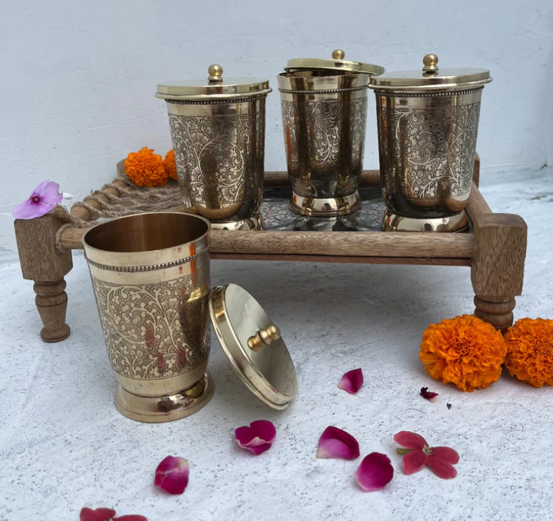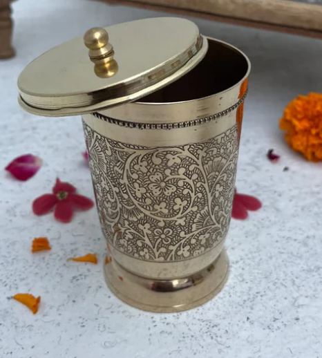 แก้วกาแฟทองเหลืองสไตล์คลาสสิกพร้อมฝาปิดกันรั่วนำกลับมาใช้ใหม่ได้กล่องของขวัญคริสต์มาสวันขอบคุณพระเจ้าตลอดเวลาที่ดื่ม