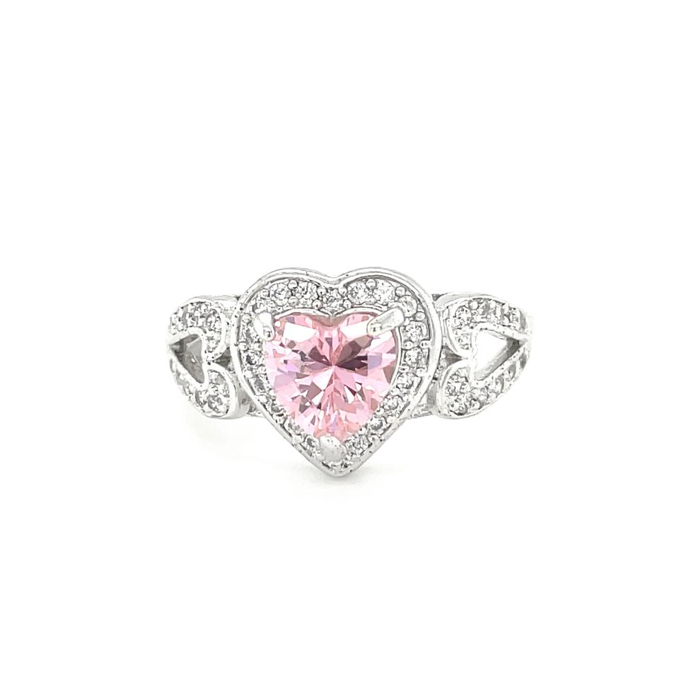 แหวนหมั้นหัวใจสไตล์คลาสสิกชุบโรเดียมเซอร์โคเนีย
