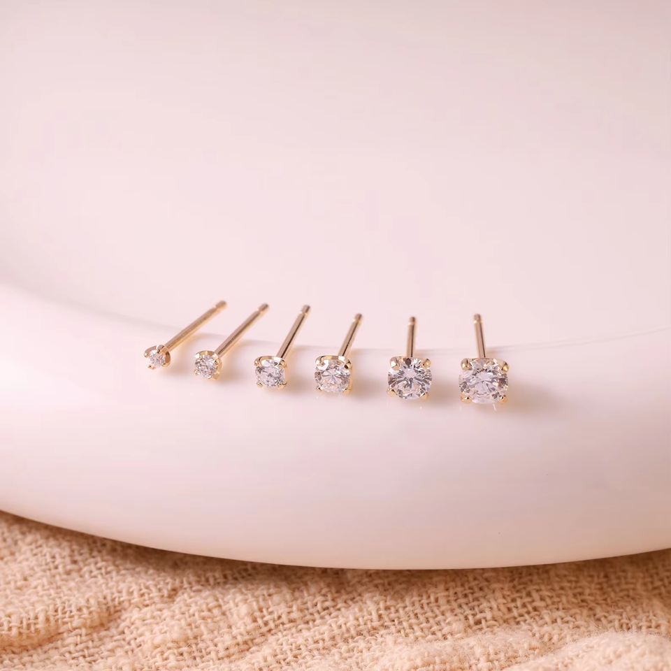 Classic Style Lab Grown Diamond Earrings With Refined Setting Five Size Earrings 14K Solid Gold Dainty Wedding Jewelry