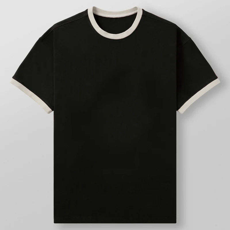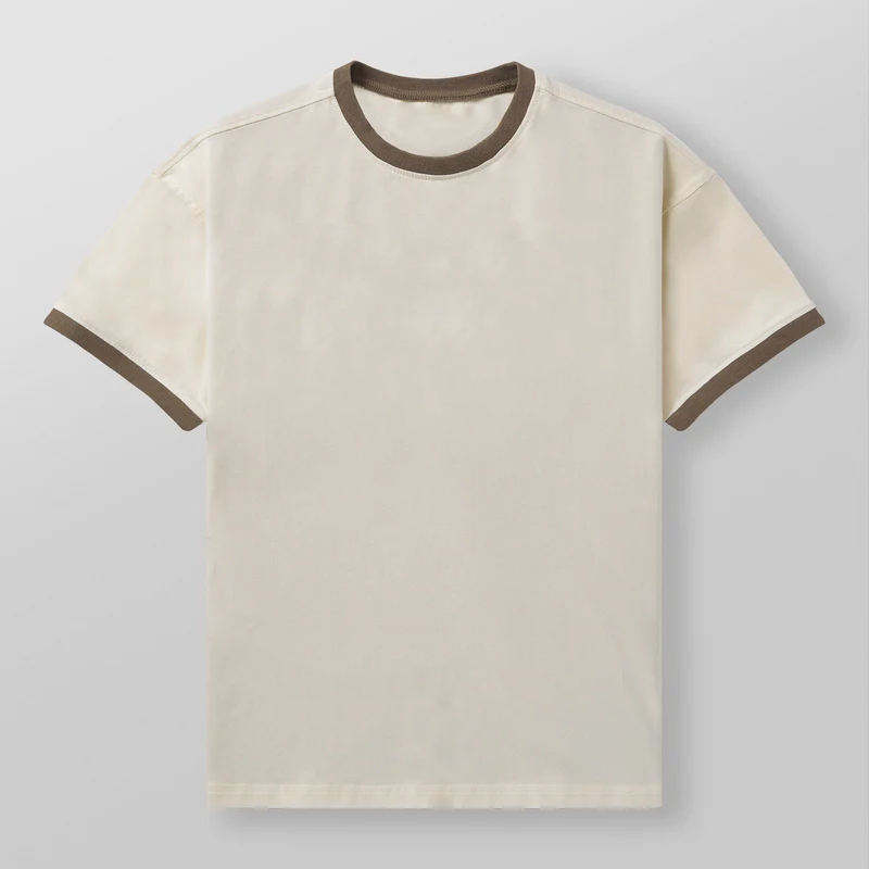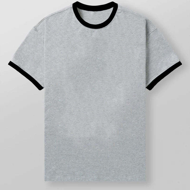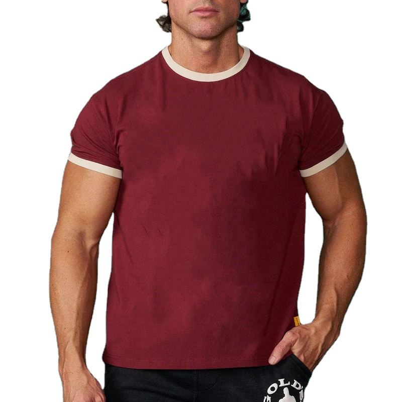 เสื้อยืดแขนสั้นผู้ชายสไตล์คลาสสิก ดีไซน์ทันสมัย ใส่สบาย น้ำหนักปานกลาง คอเสื้อตัดสี พร้อมชายเสื้อยืดแบบยืดหยุ่น