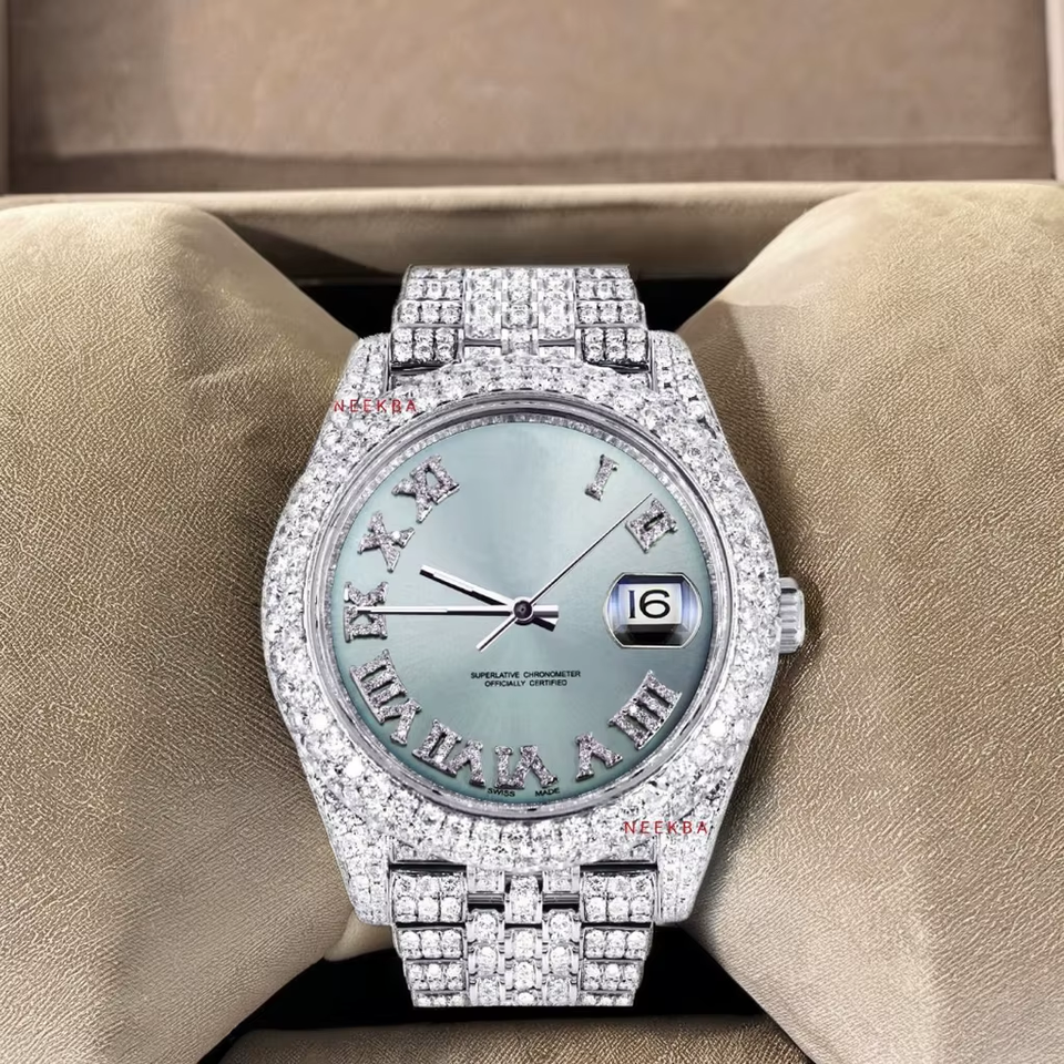 นาฬิกาอนาล็อก Moissanite สไตล์คลาสสิก-100% มือชุดหน้าอกลง Moissanite นาฬิกาหรูราคาไม่แพง