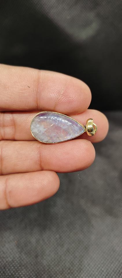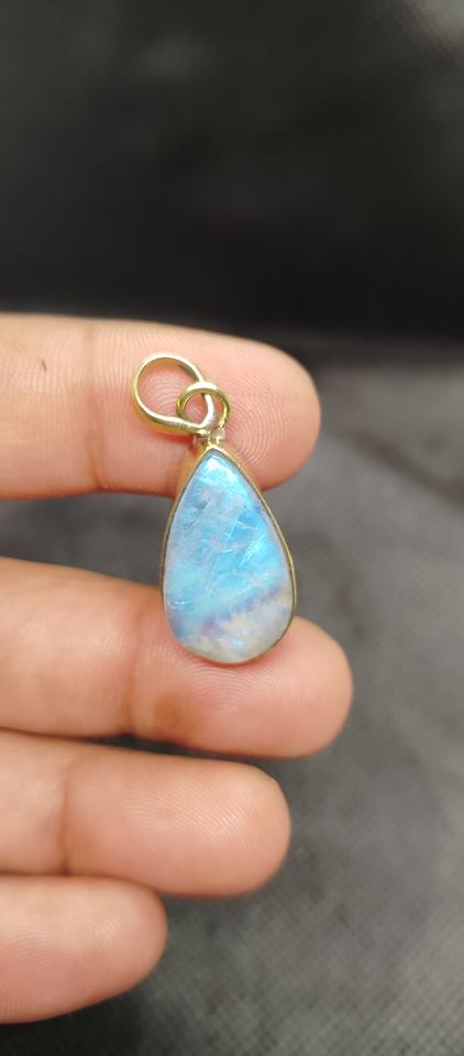 จี้หินมูนสโตนสีขาวรุ้งธรรมชาติทรงคลาสสิก ตัวเรือนทองเหลือง สำหรับผู้หญิง ขายส่งจำนวนมาก