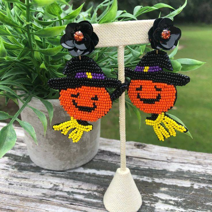 ต่างหูห้อยประดับลูกปัดฟักทองฮาโลวีนใหม่สไตล์คลาสสิกทำมือในอินเดียสำหรับผู้หญิงด้วยแฟชั่นเรืองแสง