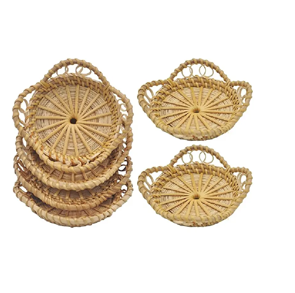 ที่รองแก้วชาหวายสไตล์คลาสสิกสำหรับร้านอาหารของตกแต่งโรงแรมเสื่อหวายส่วนบุคคลถาดรองแก้วแบบใช้ทั่วไป