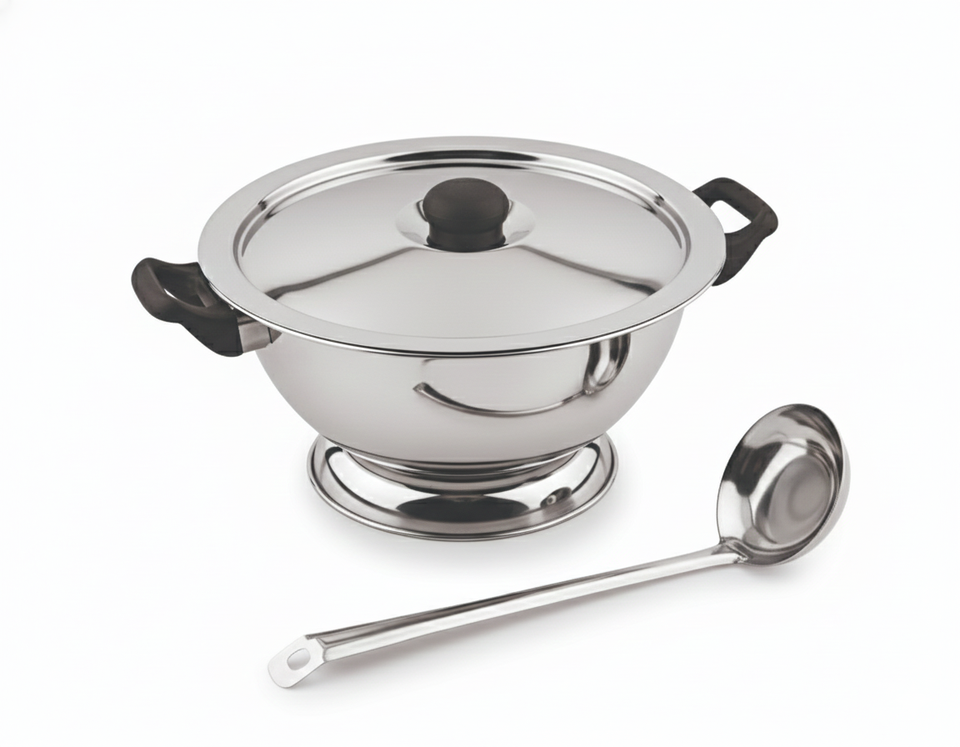 ชื่อสินค้า:ชามซุปสแตนเลสพร้อมฝาและทัพพี