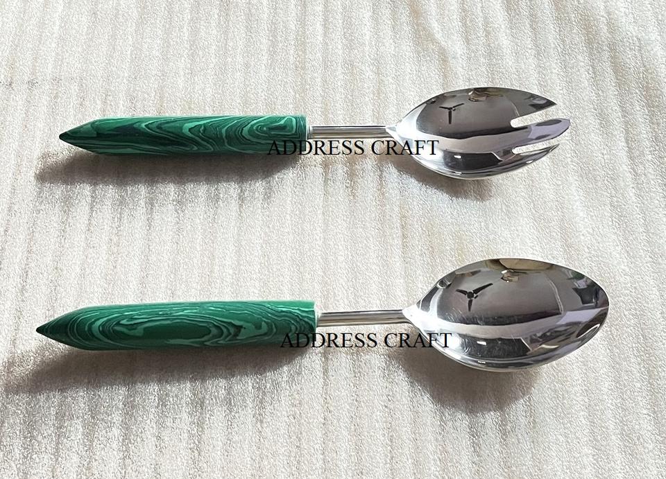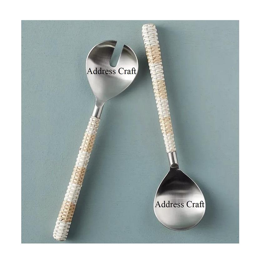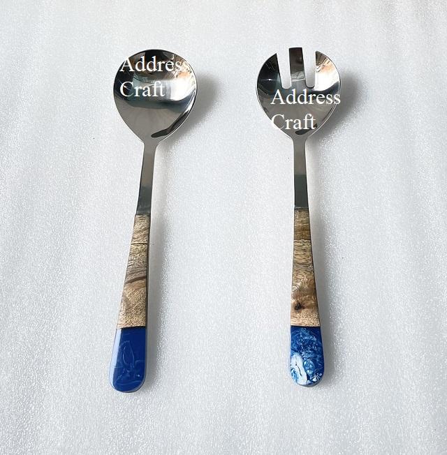 ชุดเซิร์ฟสลัดสแตนเลสด้ามไม้เรซิ่นสไตล์คลาสสิกชุดเสริฟเสิร์ฟผักส้อมเครื่องใช้บนโต๊ะอาหาร