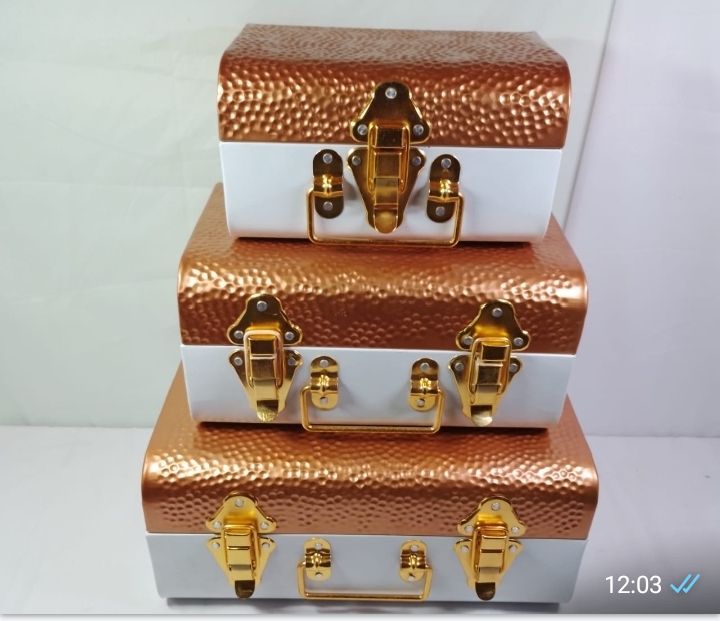 ชุดที่เก็บของท้ายรถทำจากโลหะคุณภาพพรีเมี่ยมสไตล์คลาสสิกกล่องใส่ของแบบแฮนด์เมดสามชิ้น