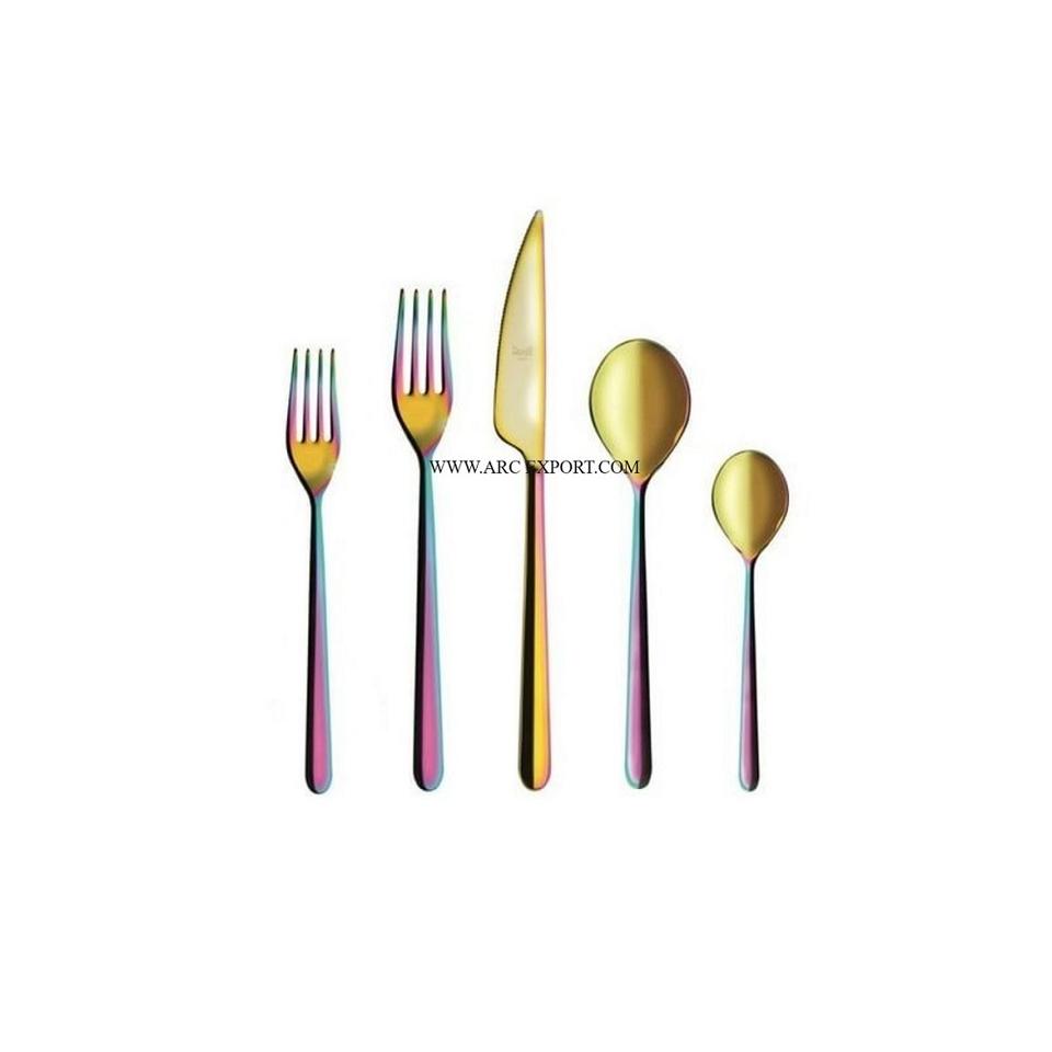 ชุดช้อนส้อมโลหะหลากสีปรับแต่งได้เครื่องครัวอุปกรณ์ทานอาหารเย็นแบบคลาสสิกพร้อมเครื่องใช้บนโต๊ะอาหารสำหรับใช้ในบ้านและของแถม