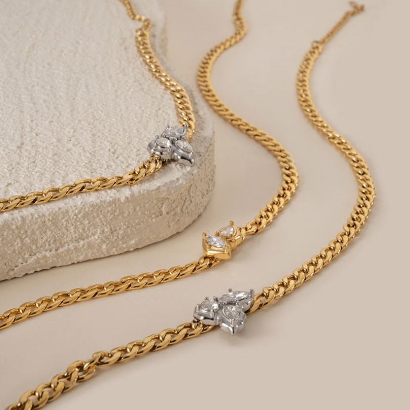 สร้อยคอแบบโซ่เคลือบทองคำแท้ ไม่ก่อให้เกิดอาการแพ้ ไม่หมองคล้ำ ประดับเพชรเลี้ยงในห้องปฏิบัติการ สำหรับผู้หญิง