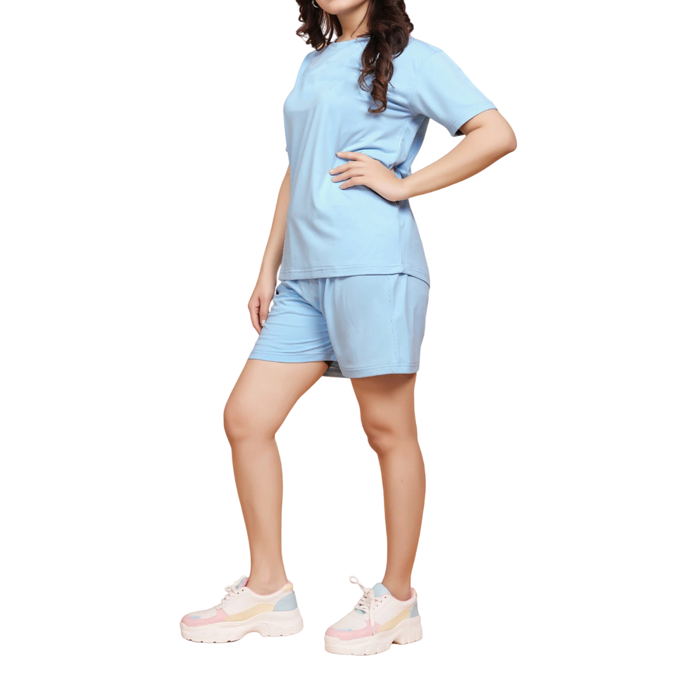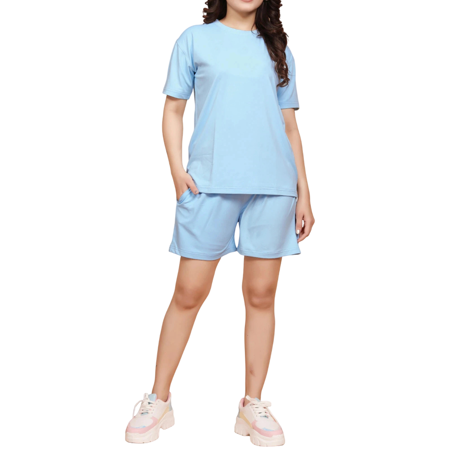 ชุดเสื้อยืดและกางเกงขาสั้นคลาสสิกสำหรับผู้หญิงเหมาะสำหรับนอกสถานที่สบายๆหรือในวันที่ผ่อนคลายด้วยสไตล์ที่ทันสมัยและเหมาะสำหรับอากาศที่อบอุ่น