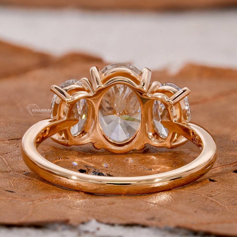 แหวนแต่งงานเพชรรูปวงรีสามวงสำหรับผู้หญิงแหวนเพชรรูปวงรีสามวงแบบคลาสสิกสำหรับเครื่องประดับมือสไตล์น่ารักคลิกสูง