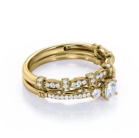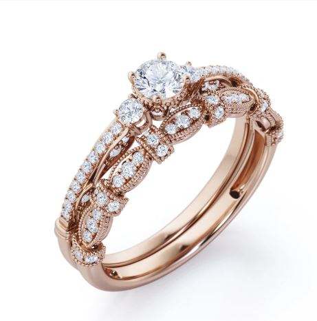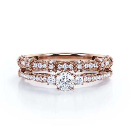 แหวนแต่งงานแบบวินเทจประดับเพชรโมอิสซาไนต์ทรงกลม 1 กะรัต แบบสามเม็ดคลาสสิก ชุบทองคำขาว 18k สีโรสโกลด์ เงินแท้ 925