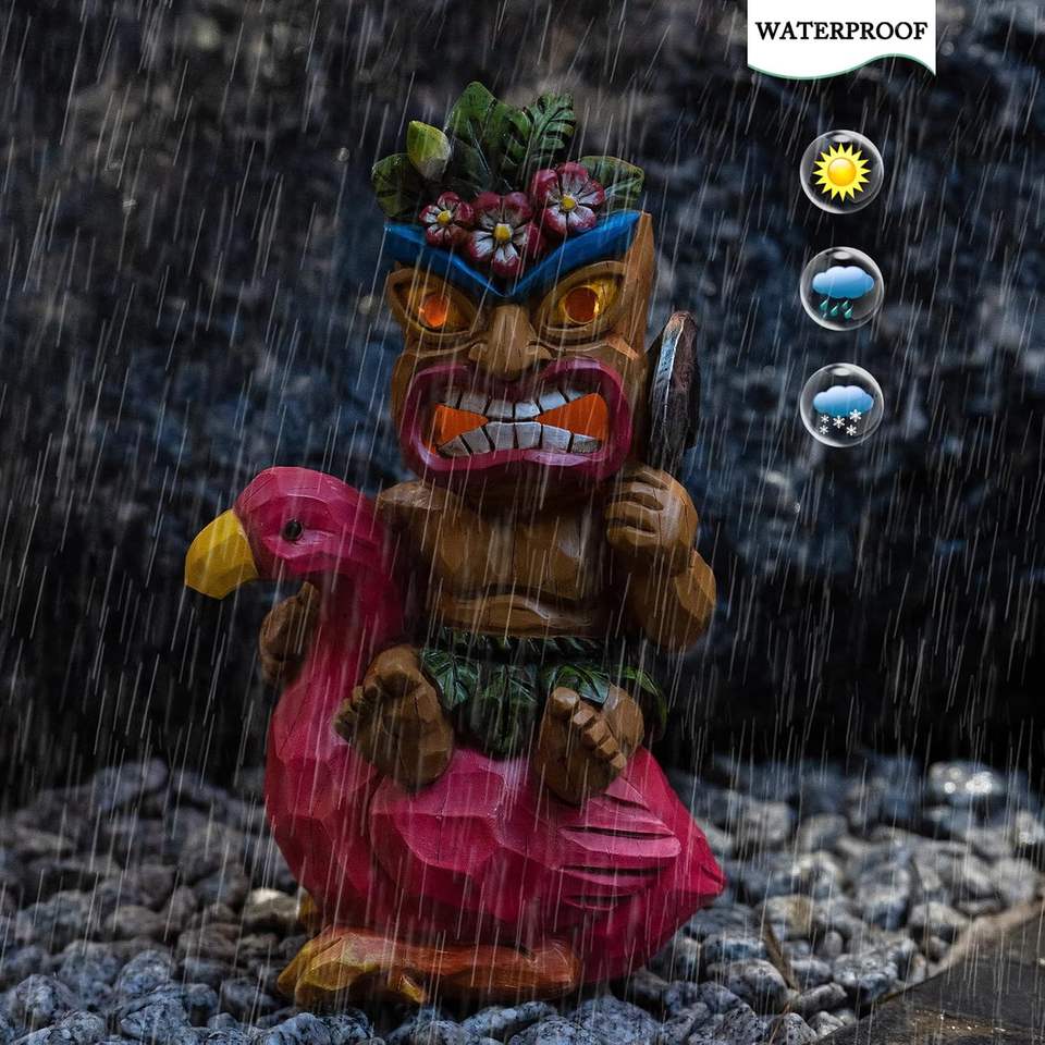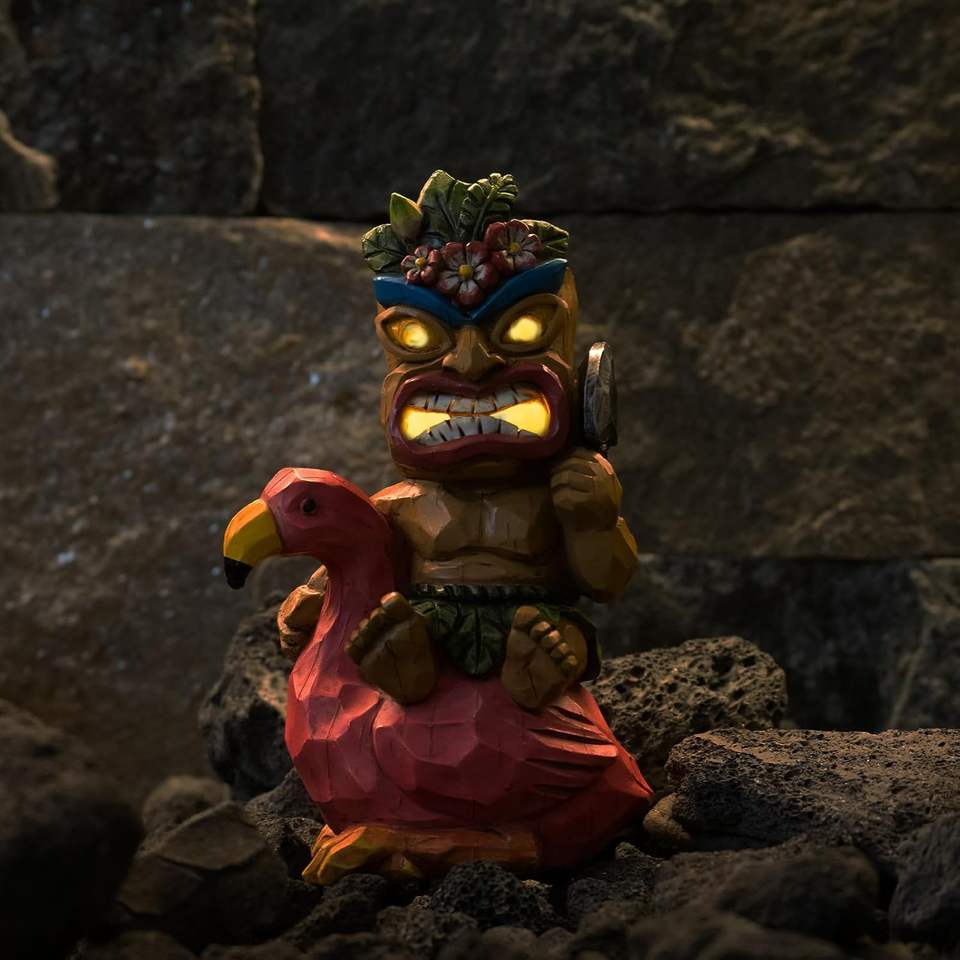 รูปปั้นฟลามิงโก้เรซิ่นทำมือสไตล์คลาสสิกสำหรับตกแต่งบาร์ทิค ขนาด 10 นิ้ว พร้อมฟลามิงโก้ขี่ทิคิ สำหรับระเบียงหรือลานบ้าน