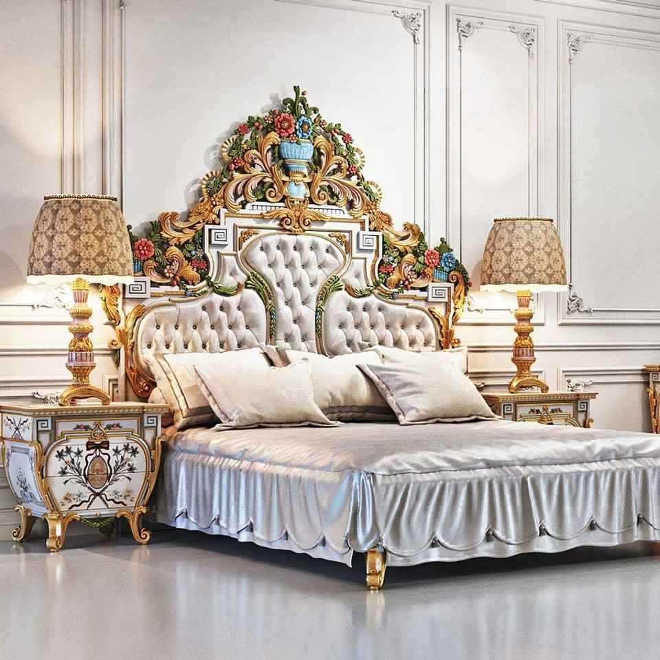 เตียงนอนคลาสสิคทัช โมเดิร์น โลตัส พร้อมโต๊ะข้างเตียง ไม้สัก พนักพิงสูง ปรับแต่งได้ ทนทาน ดีไซน์หรูหรา