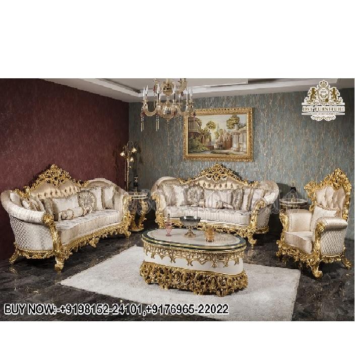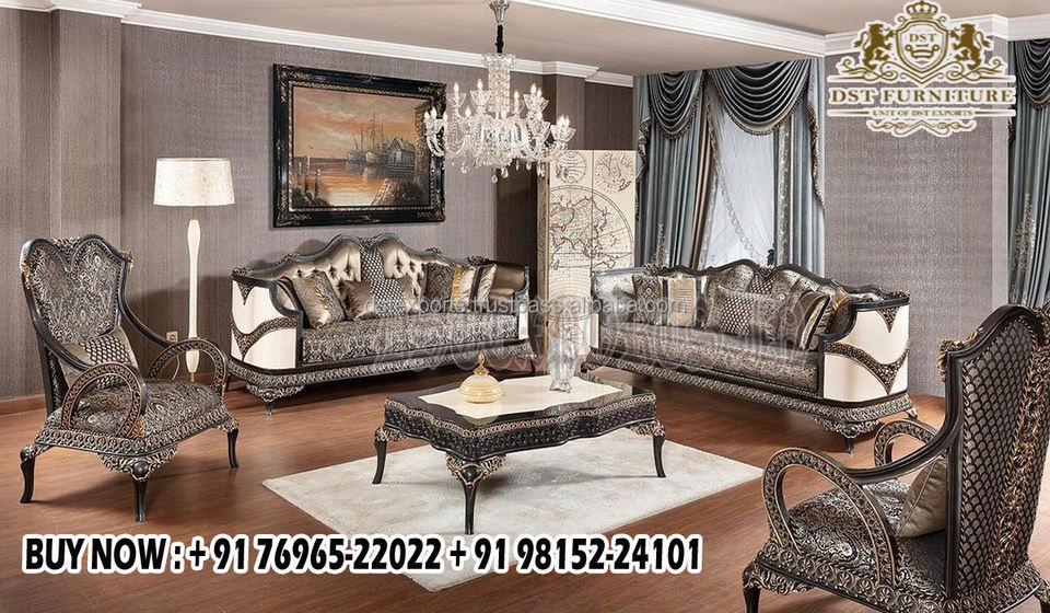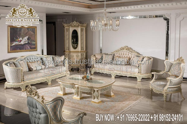 Classic Traditional Elegant Solid Teak Wood Drawing Room Furniture European Style Durable Living Room