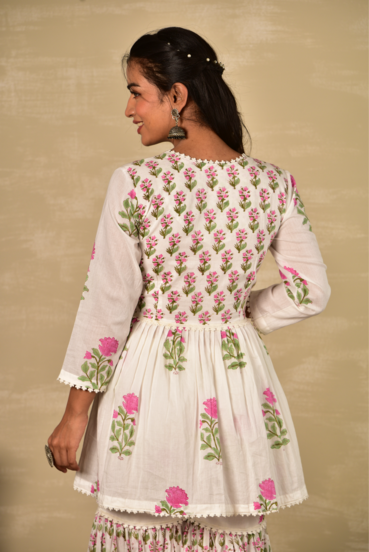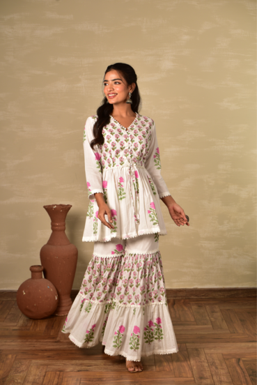 ชุด Kurta Sharara สำหรับผู้หญิงผ้าฝ้ายพิมพ์ลาย Paisley เสื้อผ้าสไตล์โบโฮสำหรับฤดูใบไม้ผลิฤดูร้อน