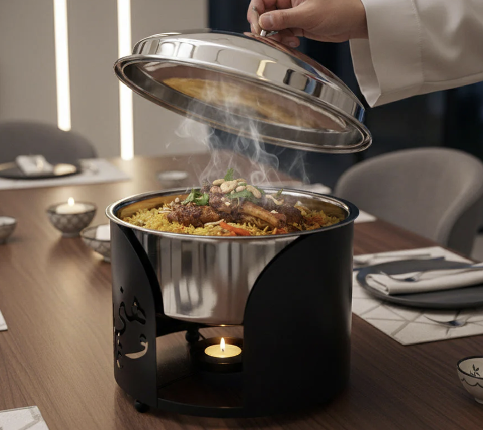 หม้อตุ๋นสเตนเลสคุณภาพสูง ดีไซน์คลาสสิก ทันสมัย เป็นมิตรกับสิ่งแวดล้อม ใช้กับเตาแก๊สและเตาแม่เหล็กไฟฟ้าได้ ลายธีมรอมฎอน สำหรับบุฟเฟ่ต์ สีสันปรับแต่งได้