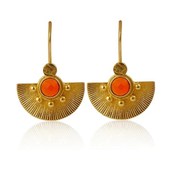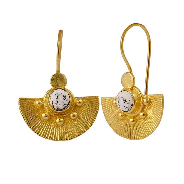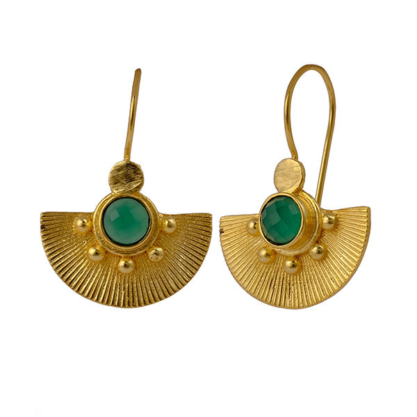 ต่างหูชุบทองของผู้หญิงทันสมัยโอนิกซ์ทำด้วยมือเครื่องประดับทองเหลืองอย่างดีพร้อมต่างหูห้อยอัญมณีธรรมชาติ