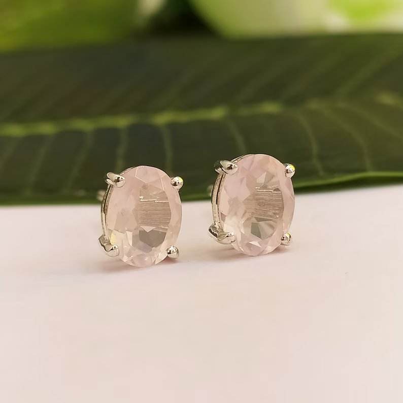 ต่างหูเม็ดเดี่ยวสีเงินสเตอร์ลิง925อินเทรนด์คลาสสิกต่างหูไข่มุกกุหลาบควอตซ์ธรรมชาติของขวัญวันครบรอบวันเกิดที่น่ารัก