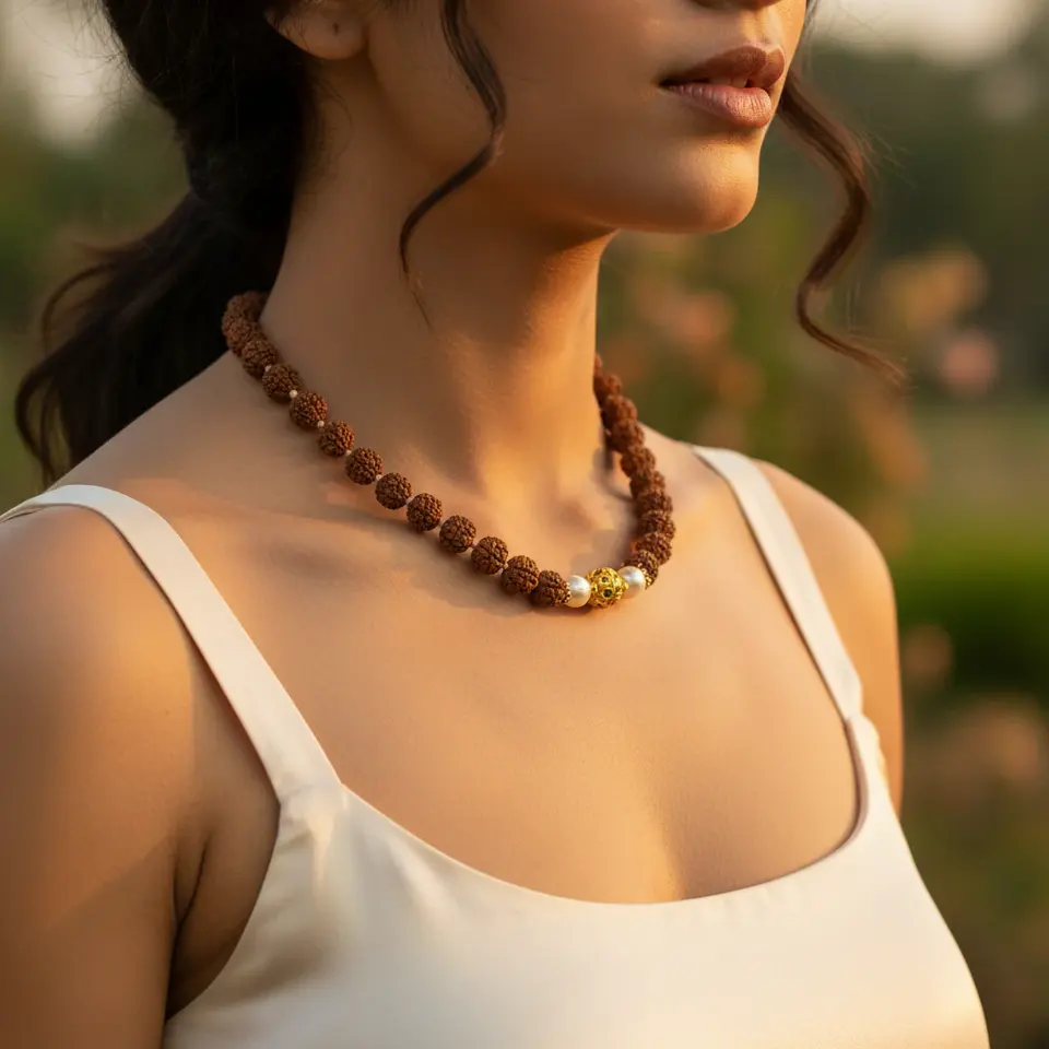 สร้อยมาลา Rudraksha สไตล์คลาสสิกทันสมัยสำหรับผู้ชายและผู้หญิง เครื่องประดับลูกปัดทางจิตวิญญาณ ทำจากอาเกต ควอตซ์ และไข่มุก รูปทรงกลม เหมาะสำหรับเป็นของขวัญทางศาสนา