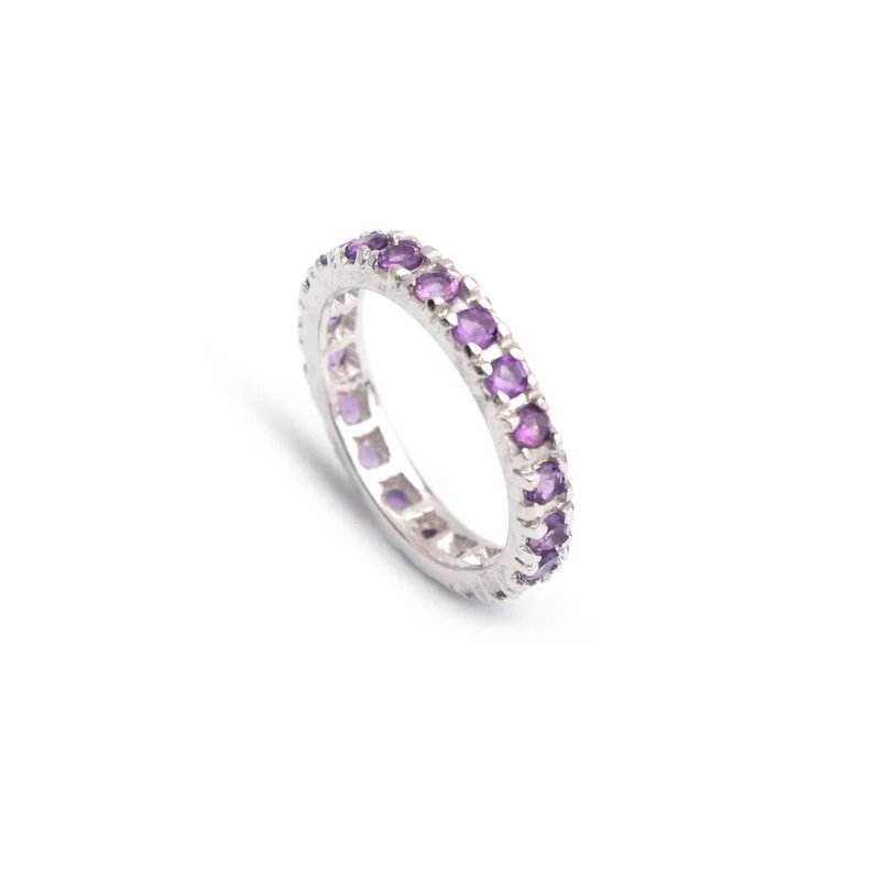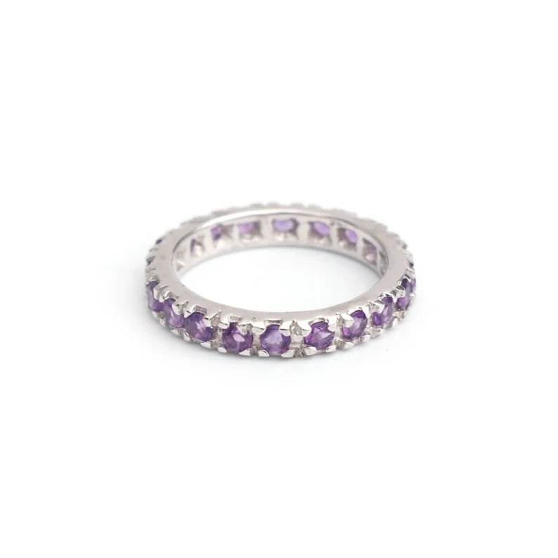 หินอเมทิสต์ธรรมชาติสีเงินสเตอร์ลิง925ทึบทันสมัยคลาสสิกสำหรับงานแต่งงานงานหมั้นของขวัญโรแมนติก925ทึบ