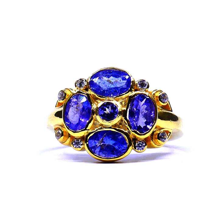 แหวนสตรีสุดคลาสสิกอินเทรนด์925อัญมณีแทนซาไนต์ชุบทองเงินสเตอริงเครื่องประดับสำหรับปาร์ตี้