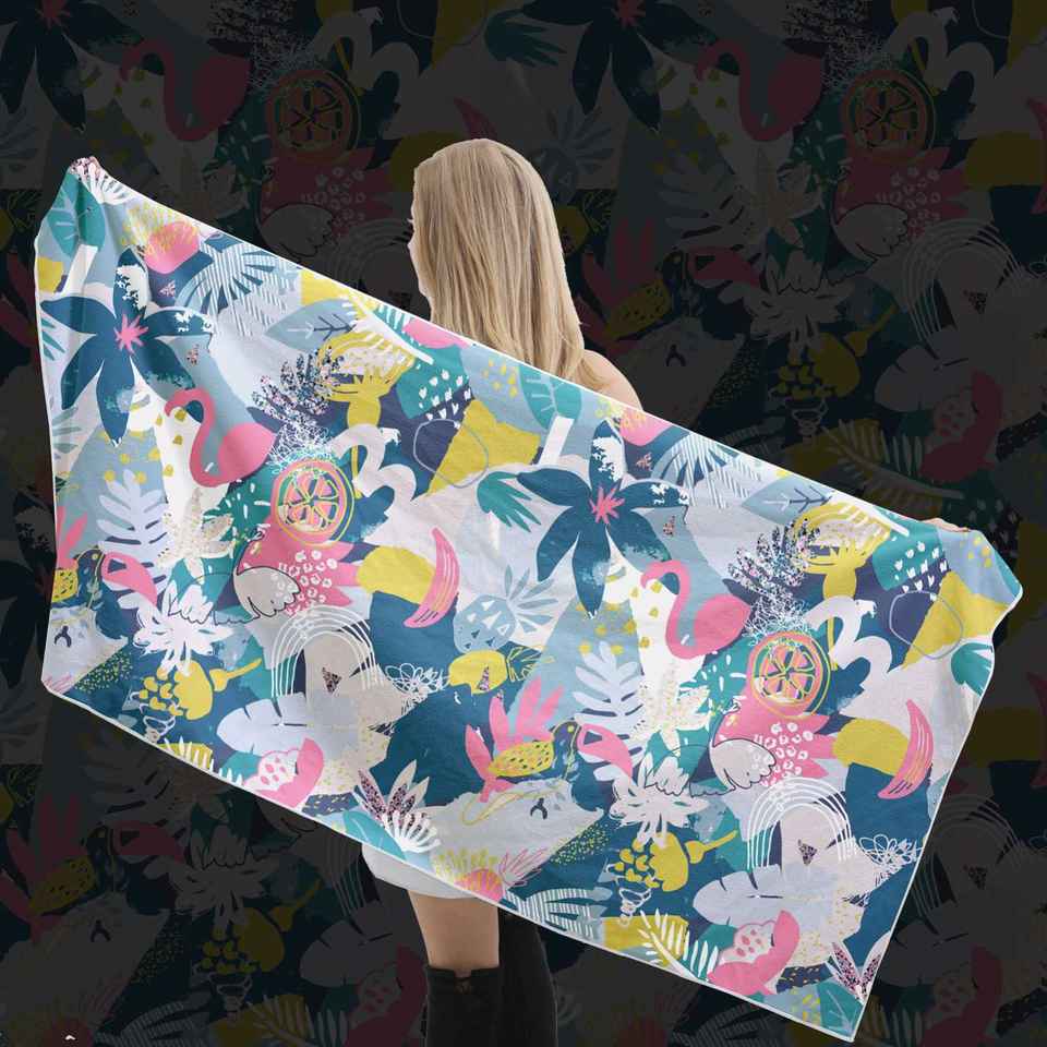 รายการ:กระเป๋าชายหาดสะพายไหล่ลายนกฟลามิงโกคอลเลกชันสวรรค์สีชมพูคลาสสิกเขตร้อน