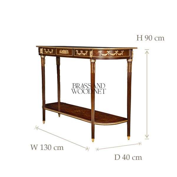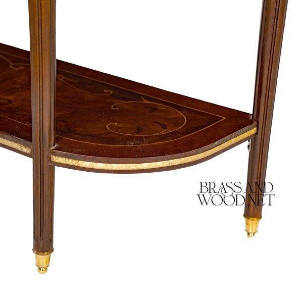 โต๊ะคอนโซลไม้สองชั้นแบบคลาสสิก ประดับด้วยรายละเอียดทองเหลืองอย่างหรูหรา เหมาะสำหรับห้องโถงทางเข้า ห้องนั่งเล่น