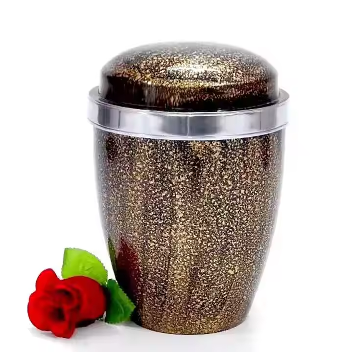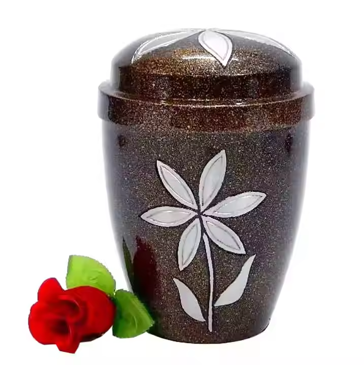 โกศสำหรับผู้ใหญ่ทำจากโลหะและงานศพผู้ใหญ่ทำจากโลหะเคลือบรูปดอกไม้สีน้ำตาลเงินขี้เถ้าแบบคลาสสิก