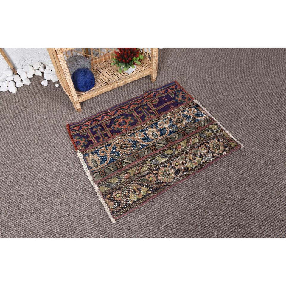 พรมขนสัตว์ตุรกี2.2ft สีม่วงและสีเบจ1.8วินเทจแนววินเทจแบบถักทอเรียบลายปะต่อสำหรับห้องนั่งเล่นพื้นหลังทำจากยาง