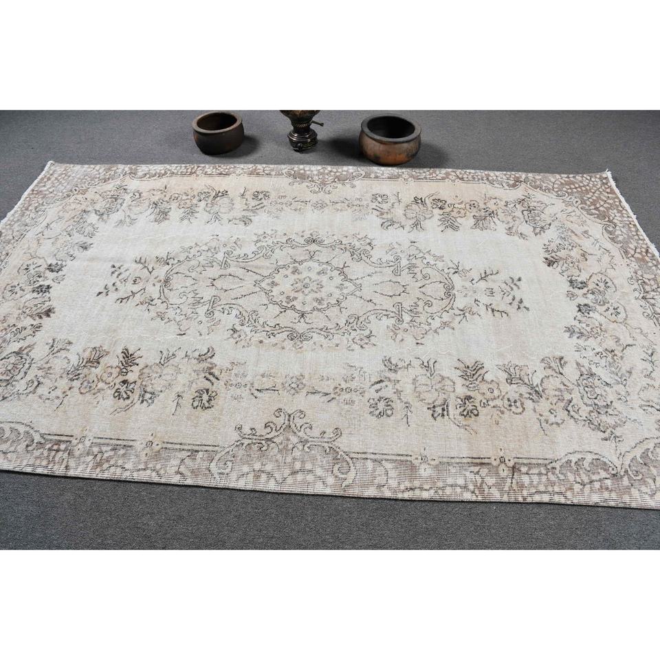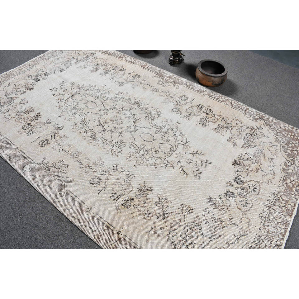 Classic Vintage 5.2 X 9 ft White Beige Wool Turkish Rug Flat Weave Patchwork Pattern Latex for Living Room Hallway Decorations