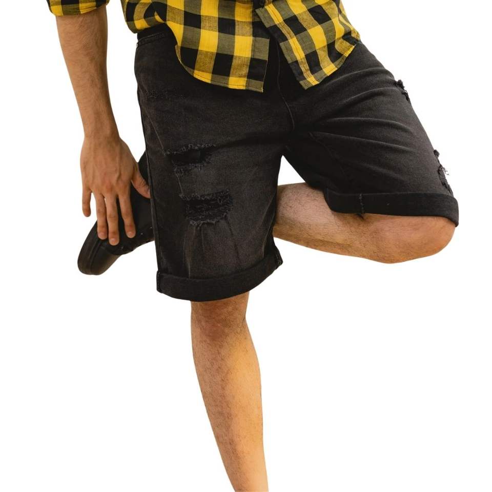 กางเกงขาสั้นผ้ายีนส์แบบปรับแต่งได้สำหรับผู้ชายผ้าฝ้ายสีดำวินเทจแบบลำลองมีสไตล์สำหรับฤดูร้อน