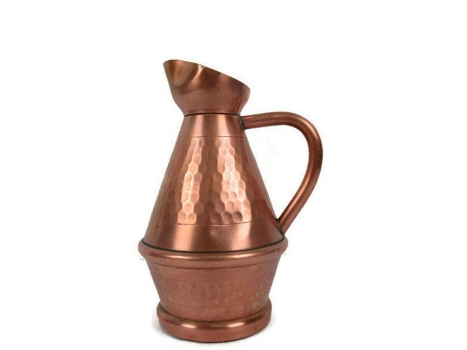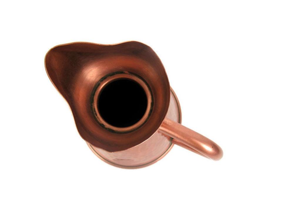เหยือกน้ำทองแดงวินเทจคลาสสิก เหมาะสำหรับโต๊ะอาหารในร้านอาหารและการเสิร์ฟในห้องพัก งานฝีมือจากอินเดีย